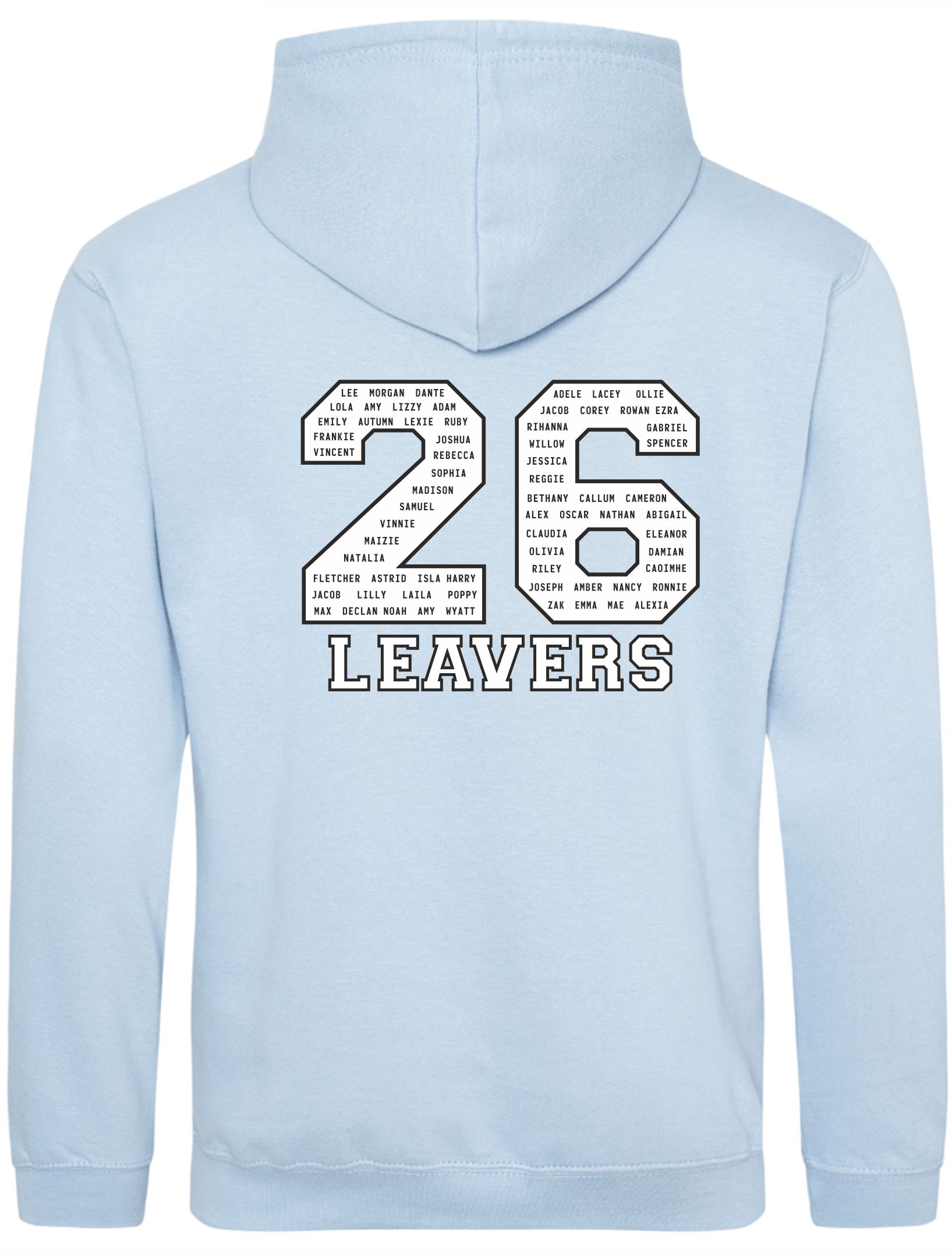 printed design with all leavers’ names added to the 25 design.